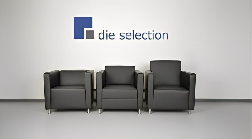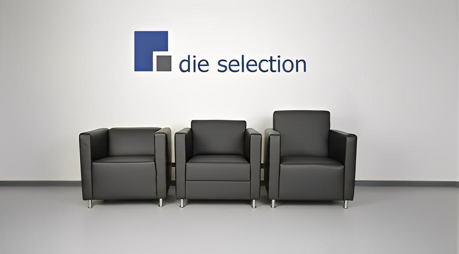 Die beiden äußeren Sessel haben eine geschlossene Front und der Sessel in der Mitte eine geteilte Front.
